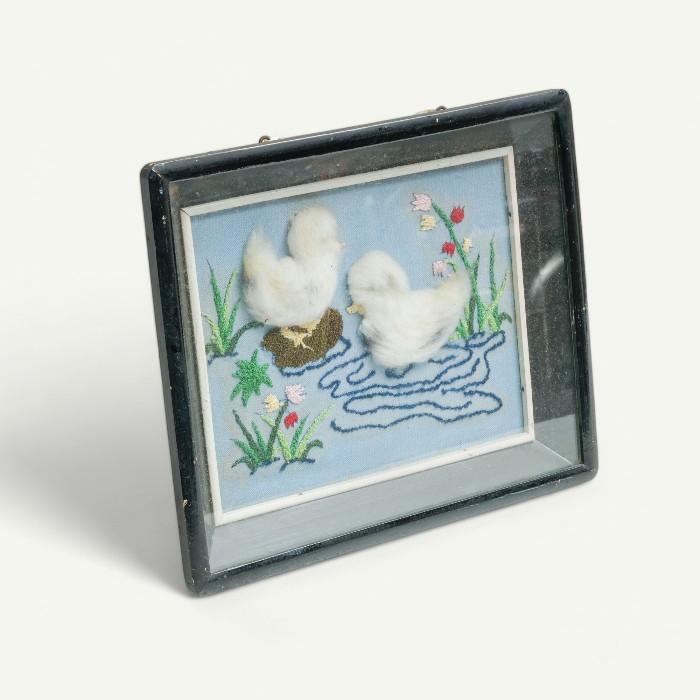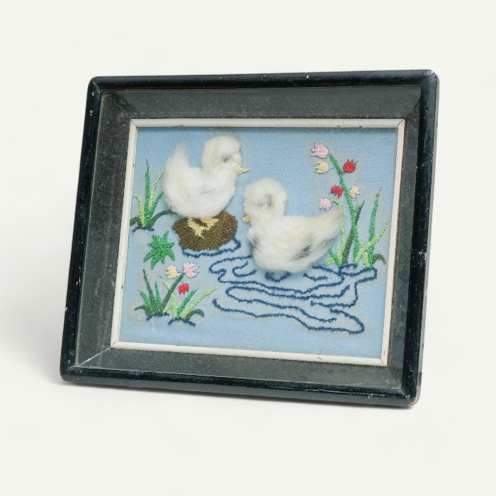 早期小鴨戲水多媒材立體畫
